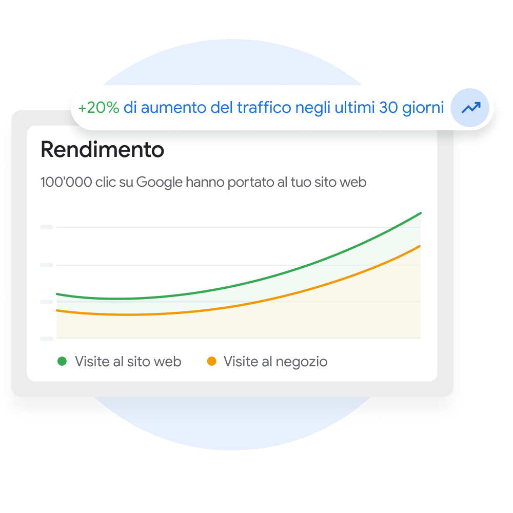 Per creare un profilo dell’attività e visualizzare la tua azienda su Google non devi pagare nulla. Gestisci la tua attività direttamente da Ricerca Google e Maps per iniziare a raggiungere più clienti.